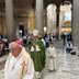 Nach so vielen Eindrücken, kommt die Mittagspause gerade recht, die, wir sind in Rom, wie soll es also anders sein, mit Pizza essen verbracht wurde. Im Anschluss geht es weiter, zur Basilika Santa Maria Maggiore. Bei der Ankunft wird klar, was zu dieser Wallfahrt auch gehört ist, das Anstehen und Abwarten. Doch das trübt die Stimmung in der Gruppe nicht. Beim Warten wird geplaudert und gebetet, sich ausgetauscht oder sinniert. In der Zwischenzeit gesellte sich auch Bischof Wiesemann zur Gruppe, der via Kopfhörer der Pilgergruppe beim Durchschreiten der Heiligen Pforte on Santa Maria Maggiore einige besinnliche Gedanken mitgab. Wer die Kirche erkunden wollte, konnte dies gemeinsam mit einer Touristenführerin machen. Und dann hieß es nochmal anstehen, um einen besonderen Moment vor dem Grab von Papst Franziskus zu erhaschen und für ihn zu beten.